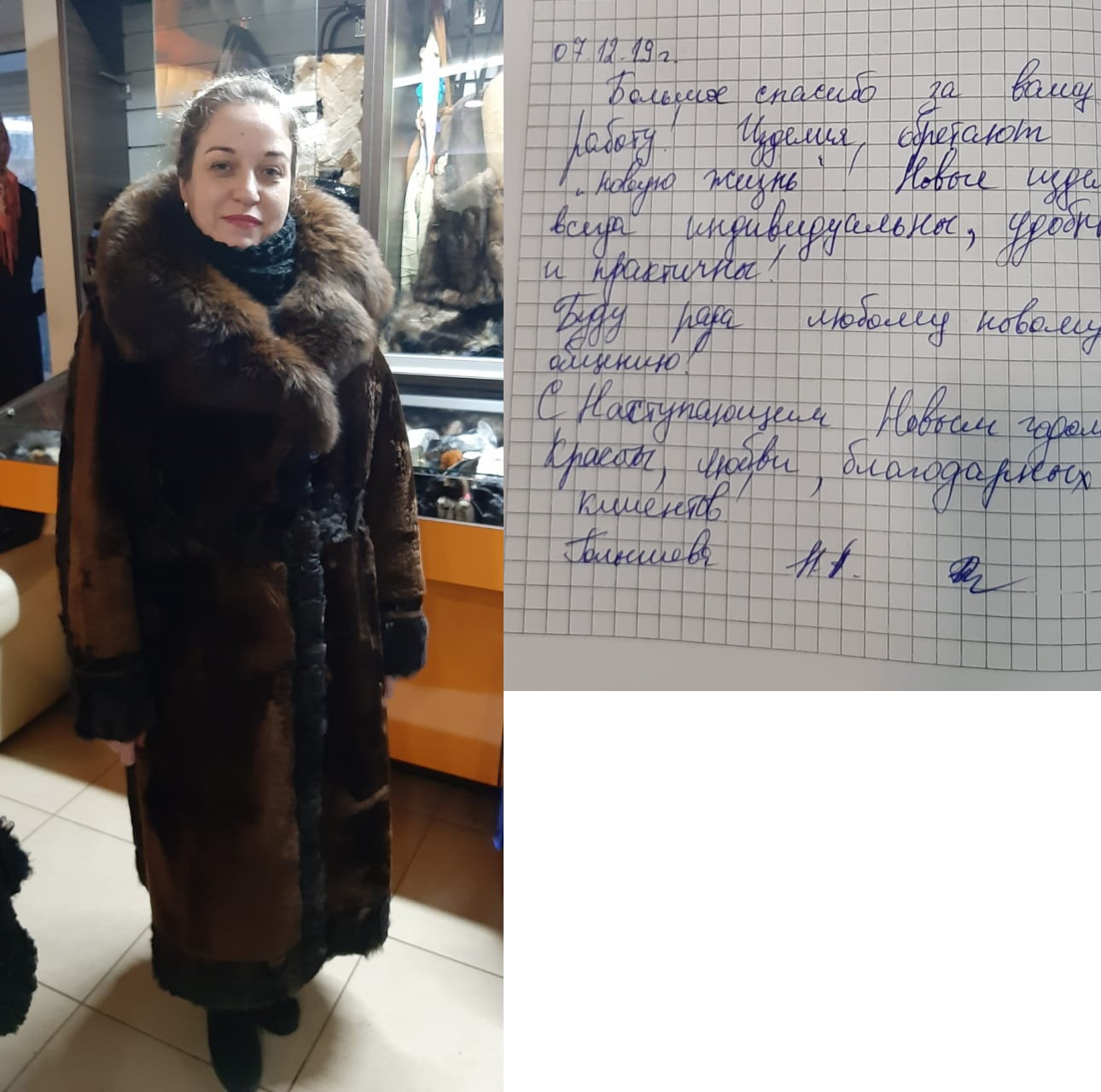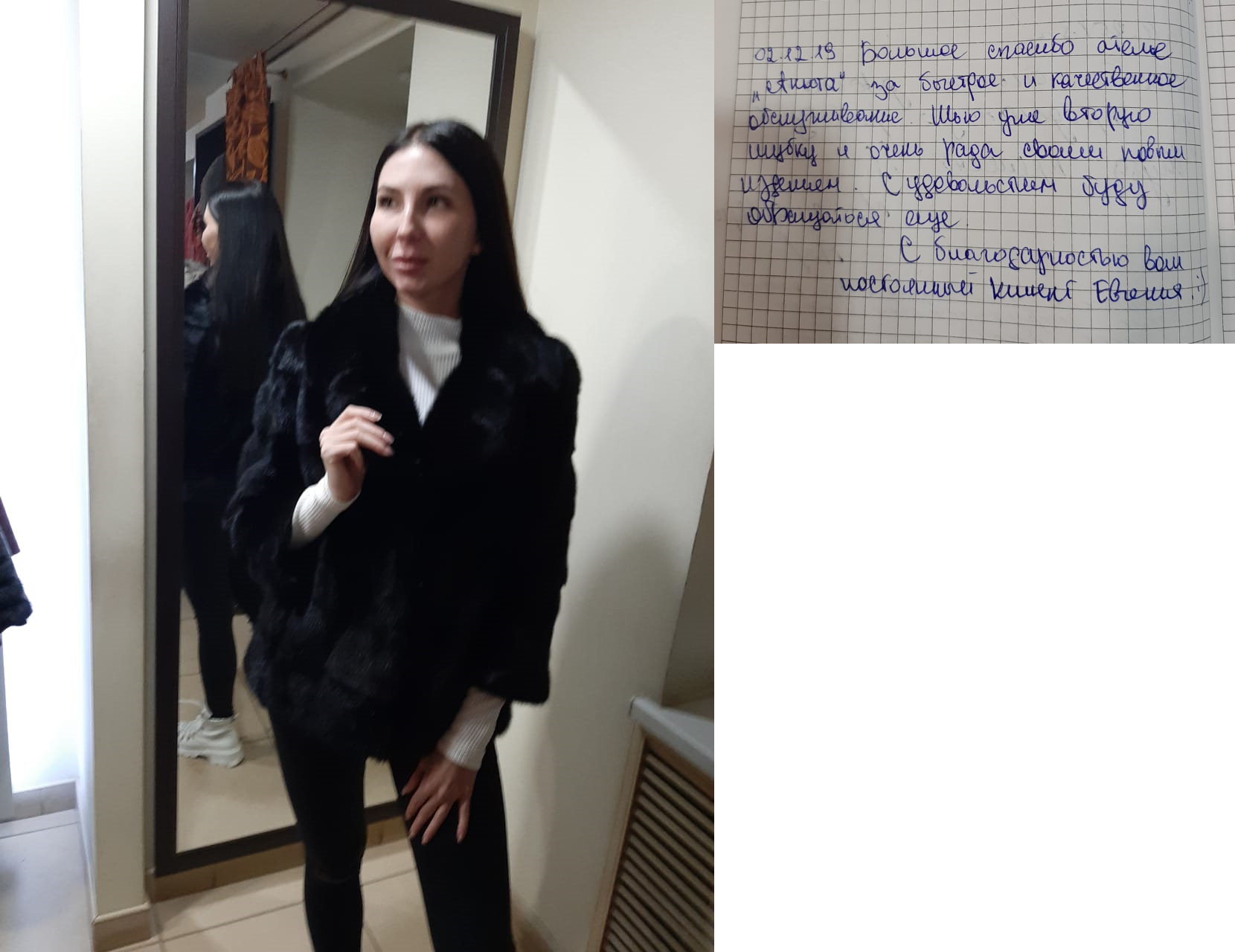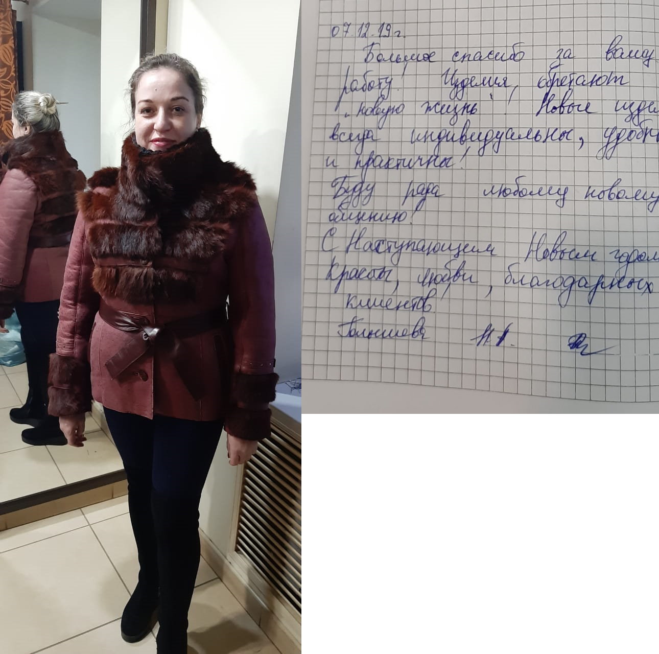 16.02.2019Спасибо большое за хорошо перешитую шубку, сделав из нее конфетку, за очень внимательное и доброе отношение к клиентам. |