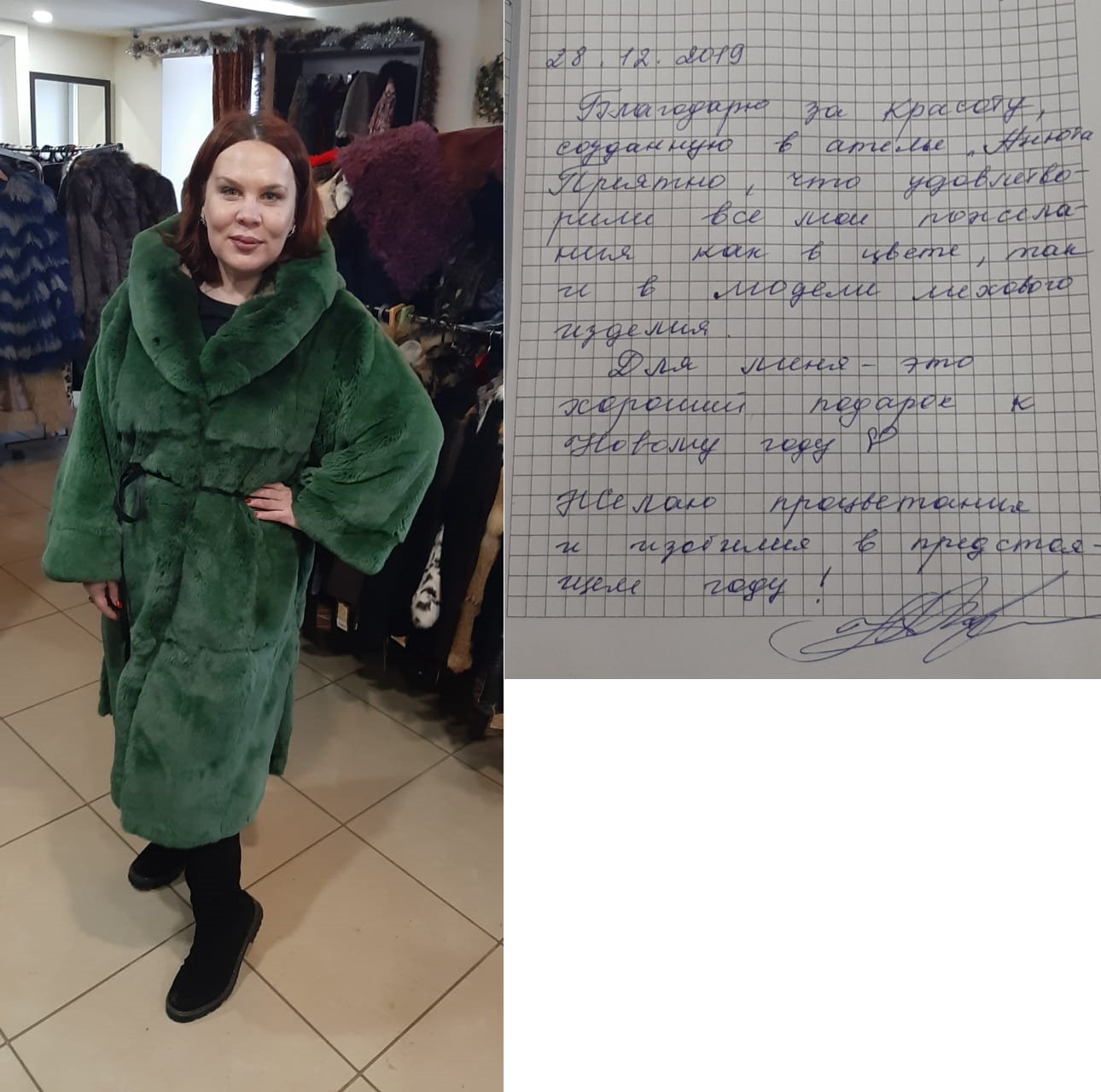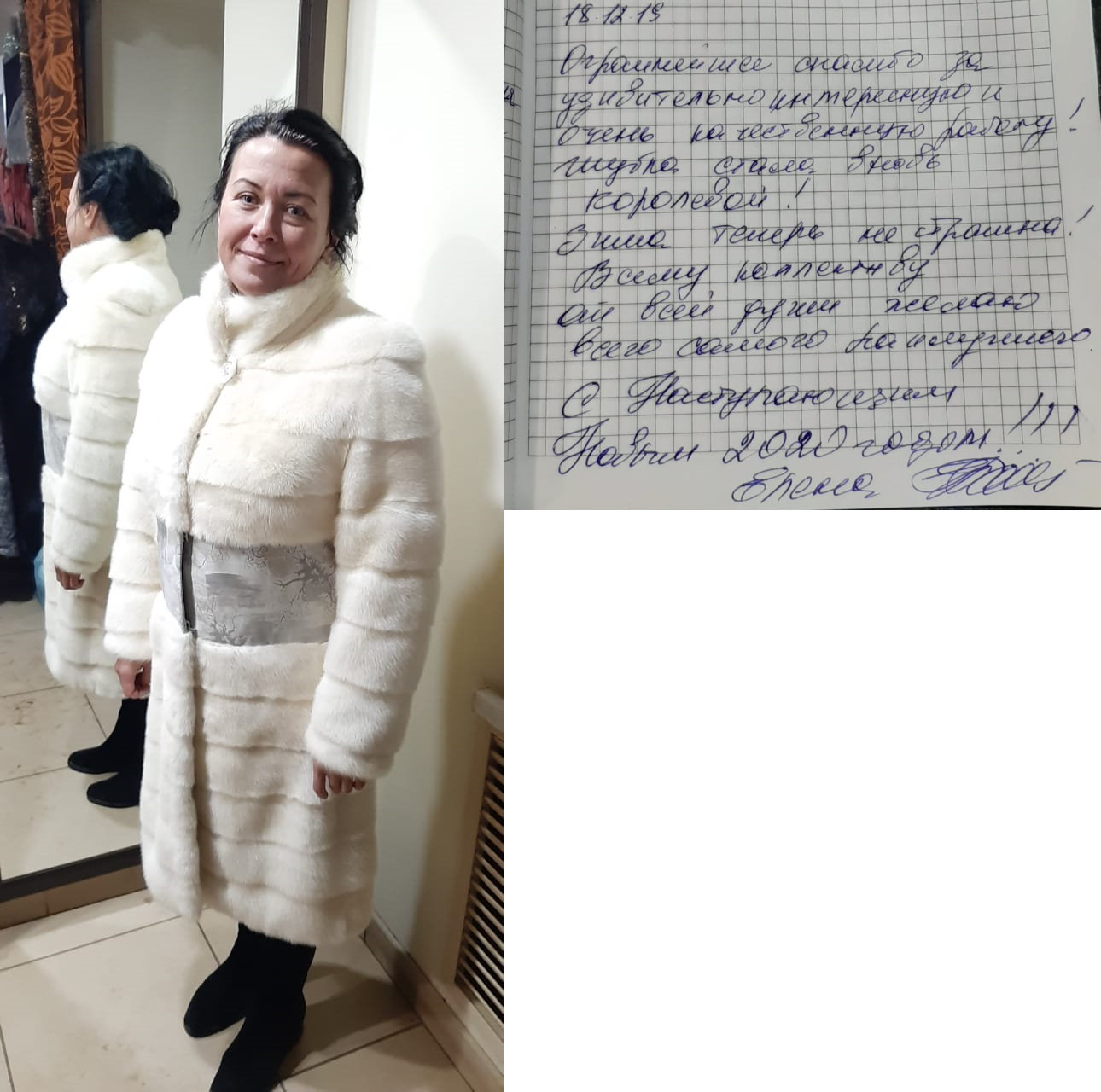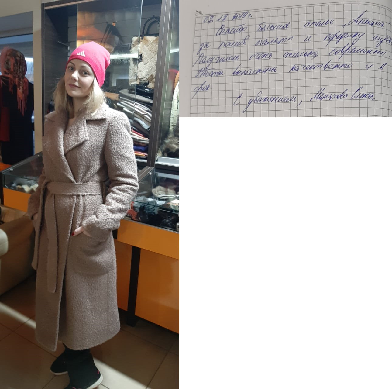 16.02.2019Спасибо большое за хорошо перешитую шубку, сделав из нее конфетку, за очень внимательное и доброе отношение к клиентам. |