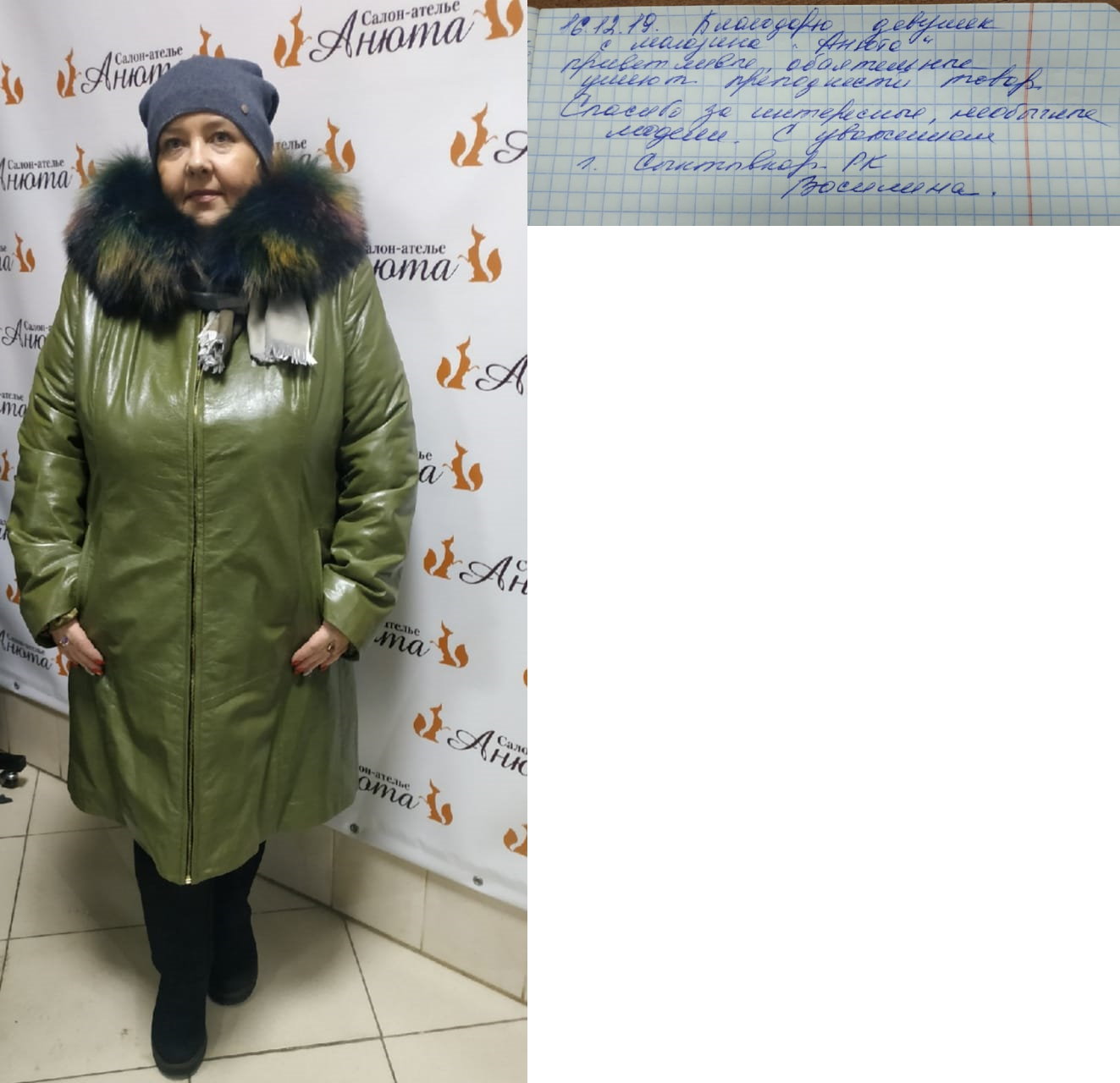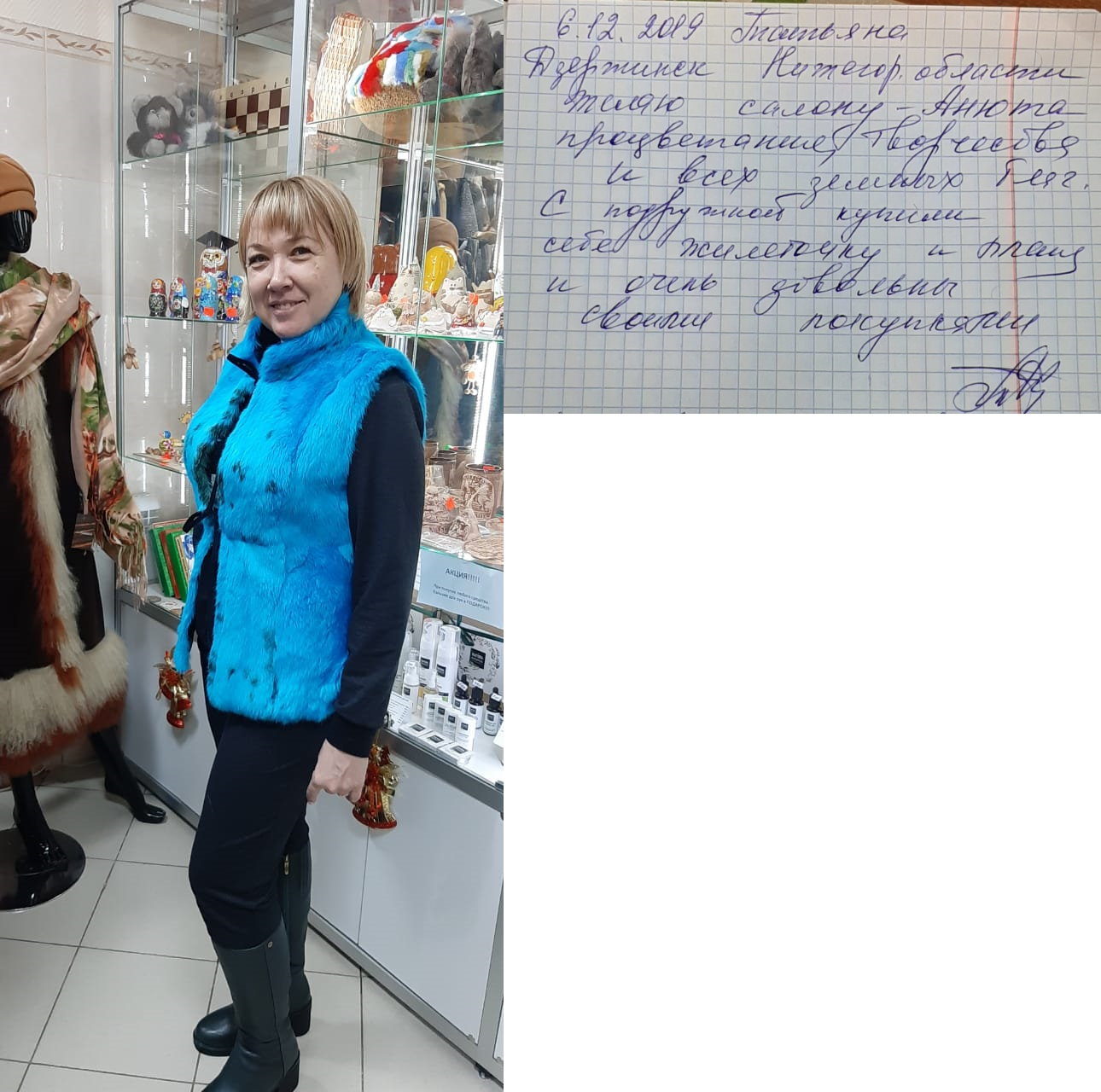 Елена Титова, г.Сыктывкар, 06.01.2019В очередной раз, огромное спасибо Светлане! Перешито пять вещей. Жилетка из лисы превращена в меховую курточку, сшита на заказ кожаная юбка и сумка. Всем довольна! «Анюте» процветания и хороших клиентов. |