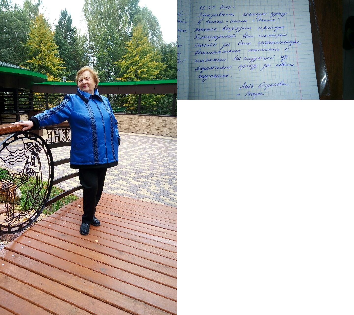 Елена, г. Нижний НовгородПриезжаю в санаторий Нижнеивкино в 5 раз и всегда уезжаю с покупками от "Анюты". Мне сшили отличное пальто-пихори, переделали мое желтое кожаное пальто (уже немодное) в великолепную стильную вещь. Так же шикарно выглядит шоколадная замшевая куртка, которую купила хотя и не планировала(просто не могла отказаться) 😀. Всегда привожу подарки родным и друзьям-классные косметички, сумки, тапочки и чудесные меховые варежки. Все "пищат"от восторга. Ни в одном магазине, я не видела такой огромный выбор модных стильных с большим вкусом сделаных вещей. "Анюта" - это бренд, говорящий о качестве, стиле и хорошем вкусе хозяйки. Огромное спасибо Светлане! Это отличный дизайнер (а все модели придумывает она) и светлый хороший человек. Здоровья и процветания!!! |