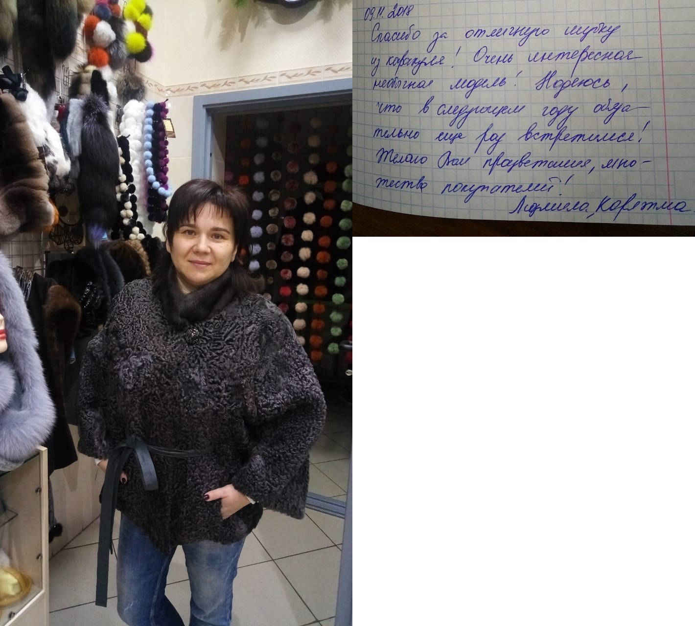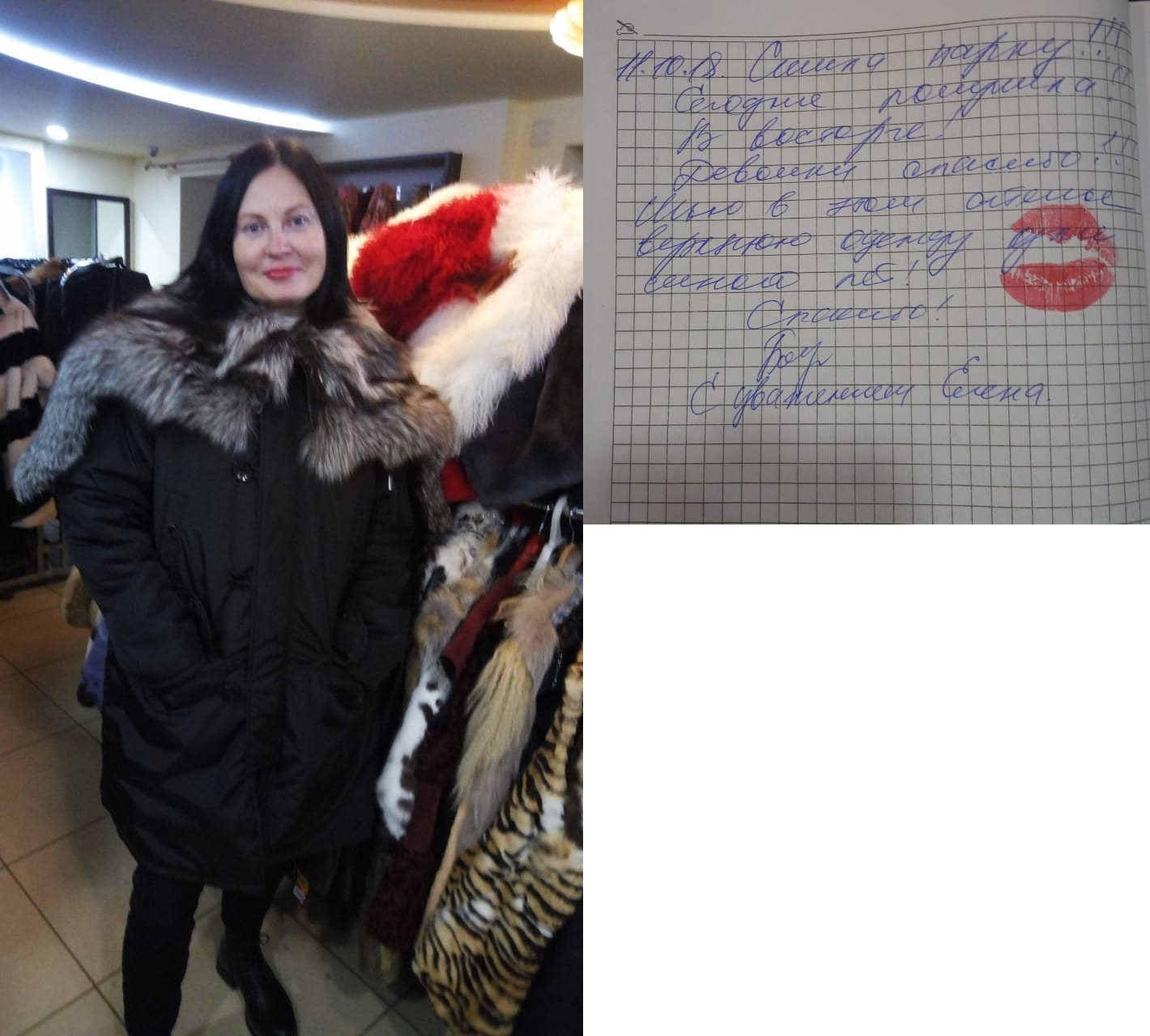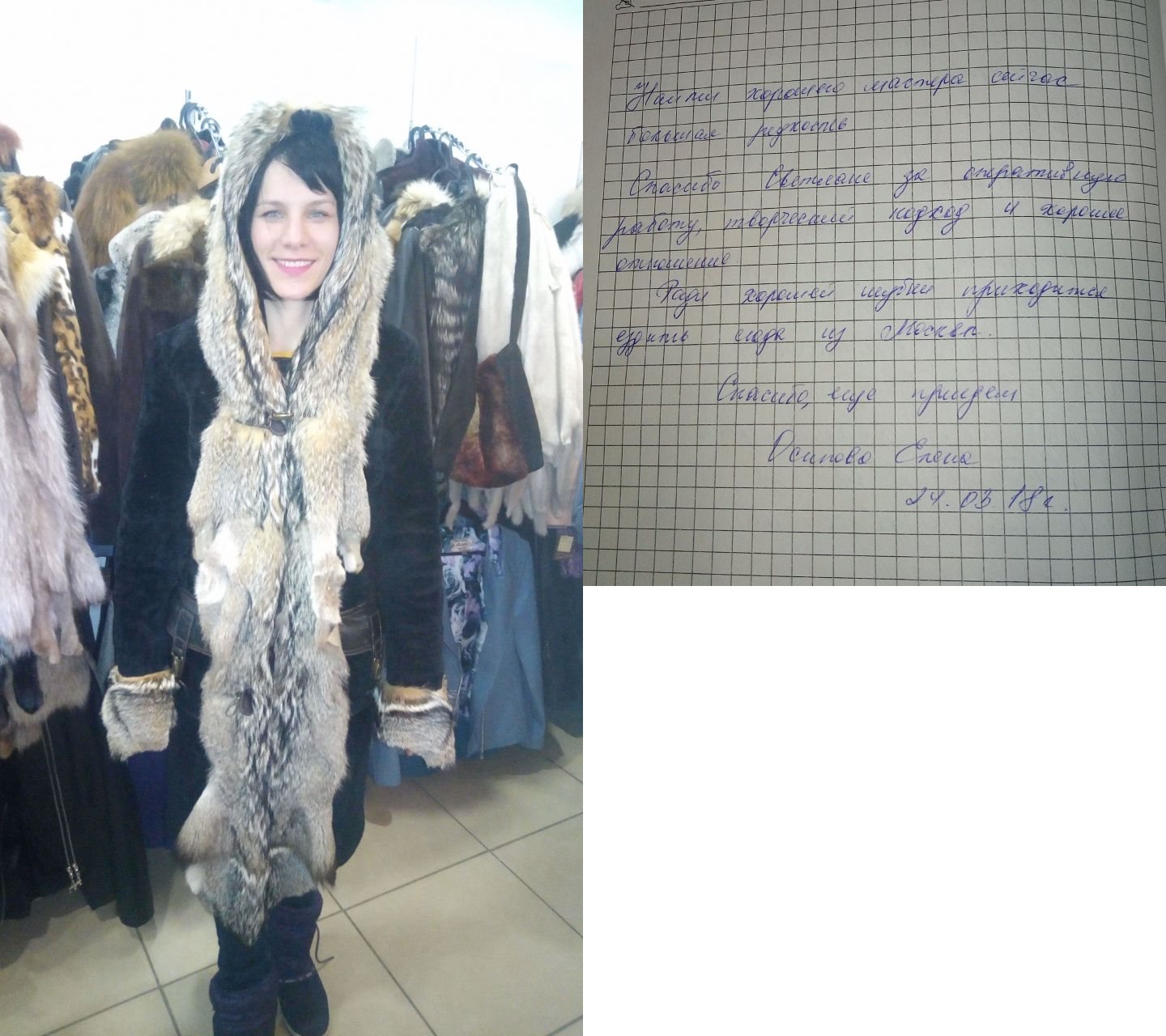 Елена ВязниковаБольшое спасибо за легкую, теплую, качественную шубку. Мечтала давно. Мечта сбылась. Большое спасибо. Творческих успехов. |
